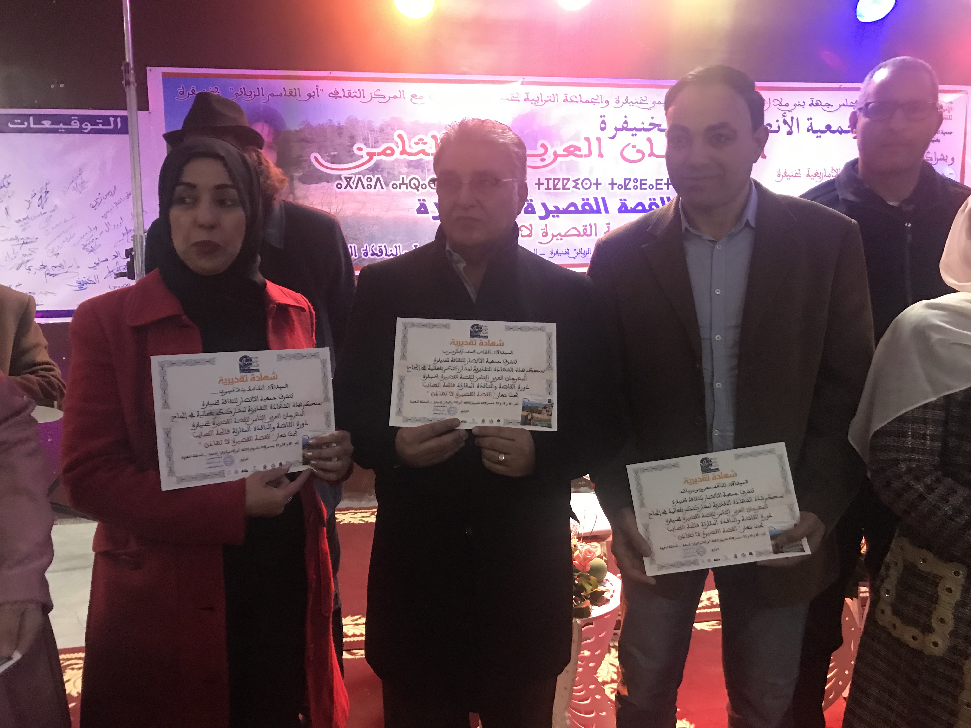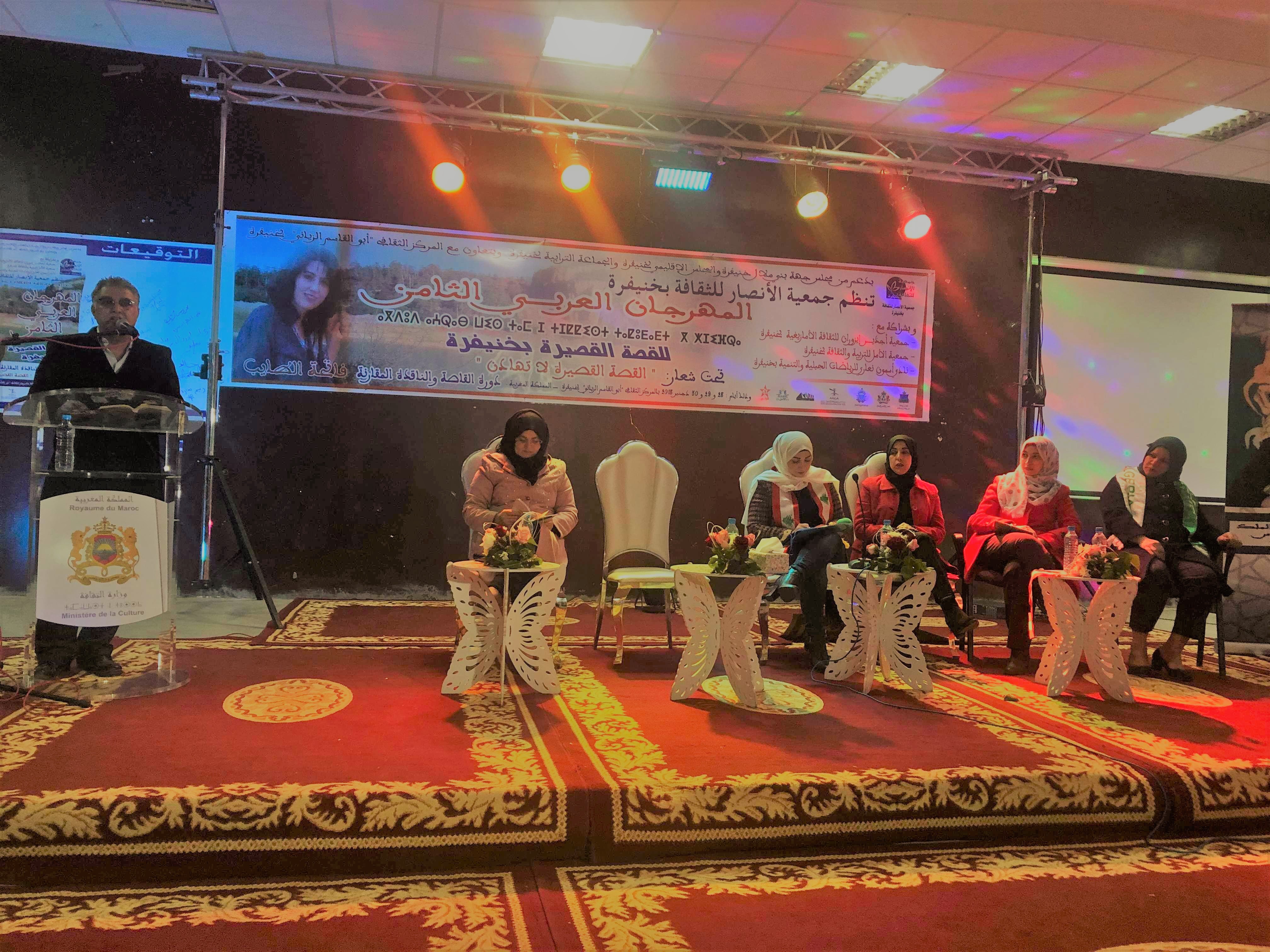 أقيم مهرجان القصة القصيرة الثامن في مدينة خنيفرة في وسط جبال الأطلس في المغرب من 28 ديسمبر إلى 30 ديسمبر 2018. قامت جمعية الأنصار للثقافة مع عدد من الجمعيات الثقافية الأخرى بتنظيم المهرجان العربي للقصة القصيرة بجهود الأستاذ عزيز ملوكي من المغرب والأستاذة هدى القاتي من تونس. وقد استقطب المهرجان قاصين ونقاد من المغرب وتونس والجزائر كما لبنان ومصر والأردن. الجدير بالذكر أن المشاركين من سوريا والعراف وفلسطين لم يستطيعوا الحضور لأسباب تقنية.