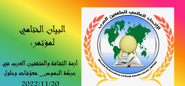 البيان الختامي لمؤتمر (أزمة الثقافة والمثقفين العرب في حركة النهوض -معوقات وحلول” الذي أقامه الاتحاد العالمي للمثقّفين العرب من 17-19 تشرين الثاني من سنة 2022