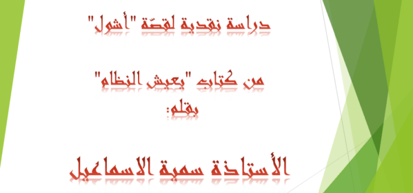 دراسة نقدية لقصّة “أشول” من كتاب “يعيش النظام” بقلم: الأستاذة سمية الإسماعيل/ سورية أمسكها بقبضته حتى جمع أشتاتها، ثم مرر أنامله بين شعابها، وقال الحمد